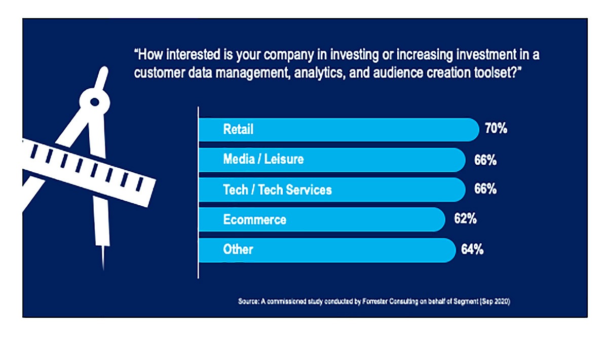 As more brands recognise the strategic value of CDPs, investment in this emerging technology is set to skyrocket. According to Forrester, 65% of companies plan to invest or increase investment in a customer data management, analytics, and audience creation toolset. Retail business showed the highest interest at 70%.