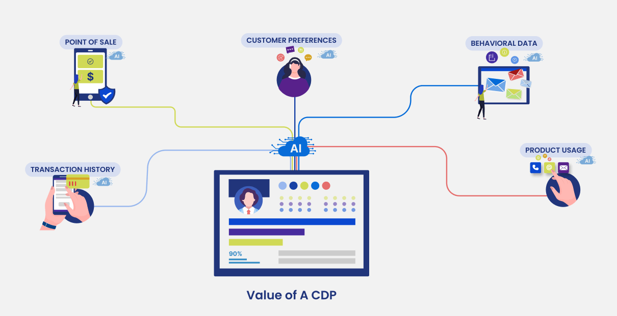 The value of a CDP provides brands with a single customer view by connecting all their data from different sources, thus empowering brands to: