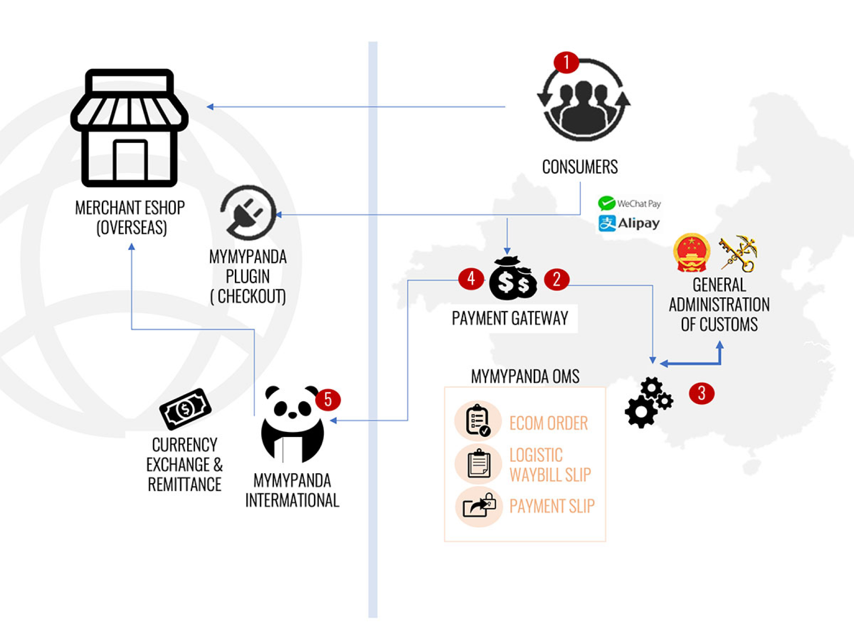 - When customers make a purchase, MYMYPANDA CBEC platform will initiate custom clearance and tax compliance via electronic submission of the three documents (ie Ecommerce Order, Payment Slip & Logistic Waybill Slip)