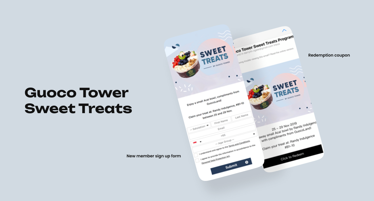 Guoco Tower is an office building with food & beverage, restaurants, coffee house, and other retail tenants. The building management launched a digital campaign as a trial to collect profile data of office workers to replace the traditional paper sign up form and printing of vouchers.